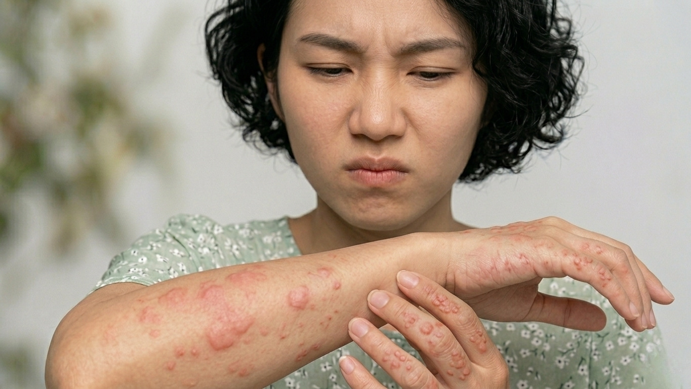 蕁麻疹是一種極其常見的皮膚過敏反應,典型症狀為全身皮膚出現形狀不規則、大小不一且極度搔癢的塊狀浮腫(膨疹)。這些浮腫可能在數小時內消失,卻又在其他部位接連出現,來去匆匆的特性讓它在民間有了「風疹塊」的稱號。