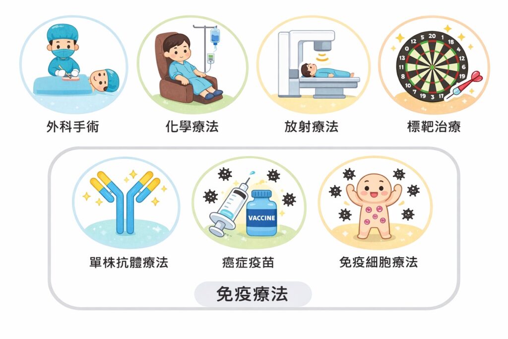 - 免疫治療新紀元:2010 年後,醫學界進入免疫治療時代,利用自身免疫系統(如 PD-1、免疫細胞療法)精準辨識並掃除癌細胞
