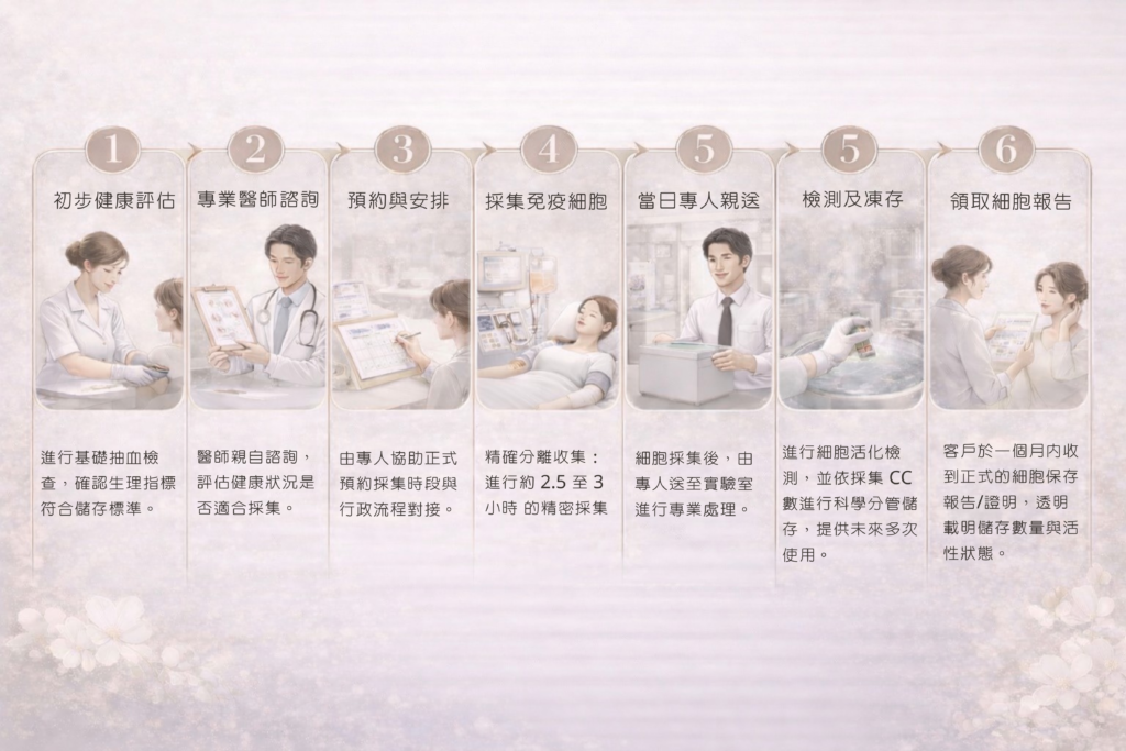 - 完成初步評估:確保已完成基礎抽血數據檢測,並經醫師諮詢確認健康狀況適合採集。