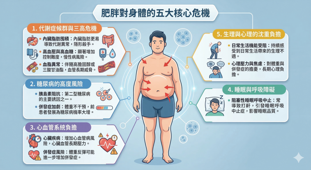 以下是肥胖會帶來的五大核心身體問題: