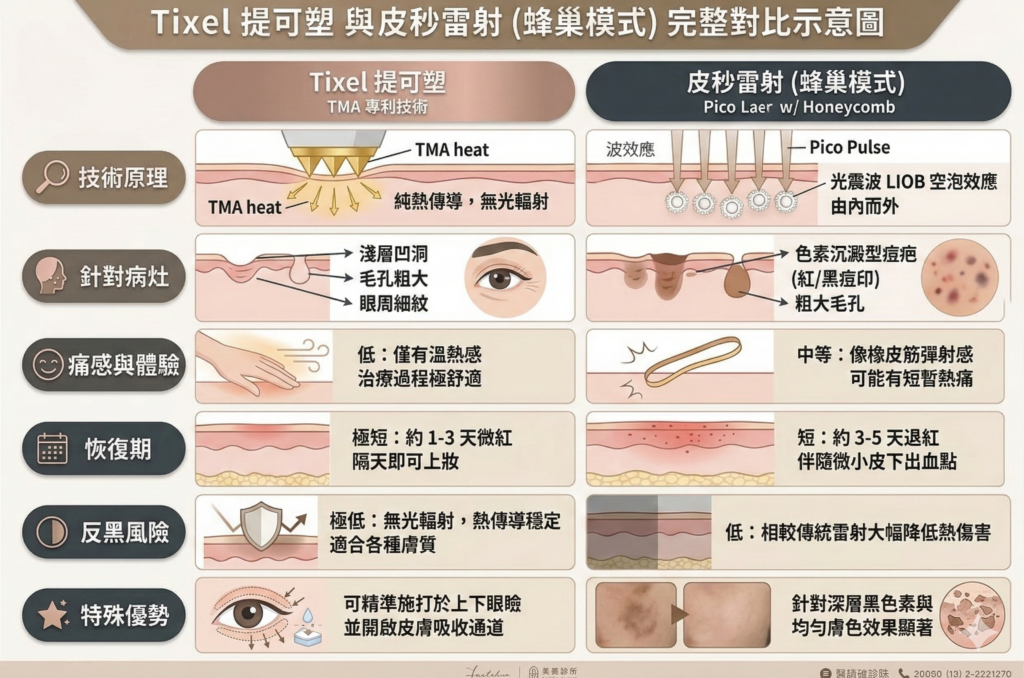 ▍痘疤治療雙王牌:提可塑 vs. 皮秒蜂巢