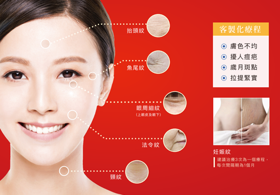 - 靈魂之窗:上下眼瞼細紋、魚尾紋拉提(不傷眼設計,免戴護目鏡)。