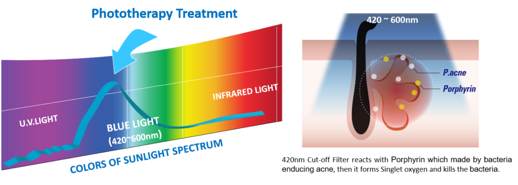 殺菌效果: 420 nm 波段具殺菌效果,適合油脂旺盛、痘痘膚質。